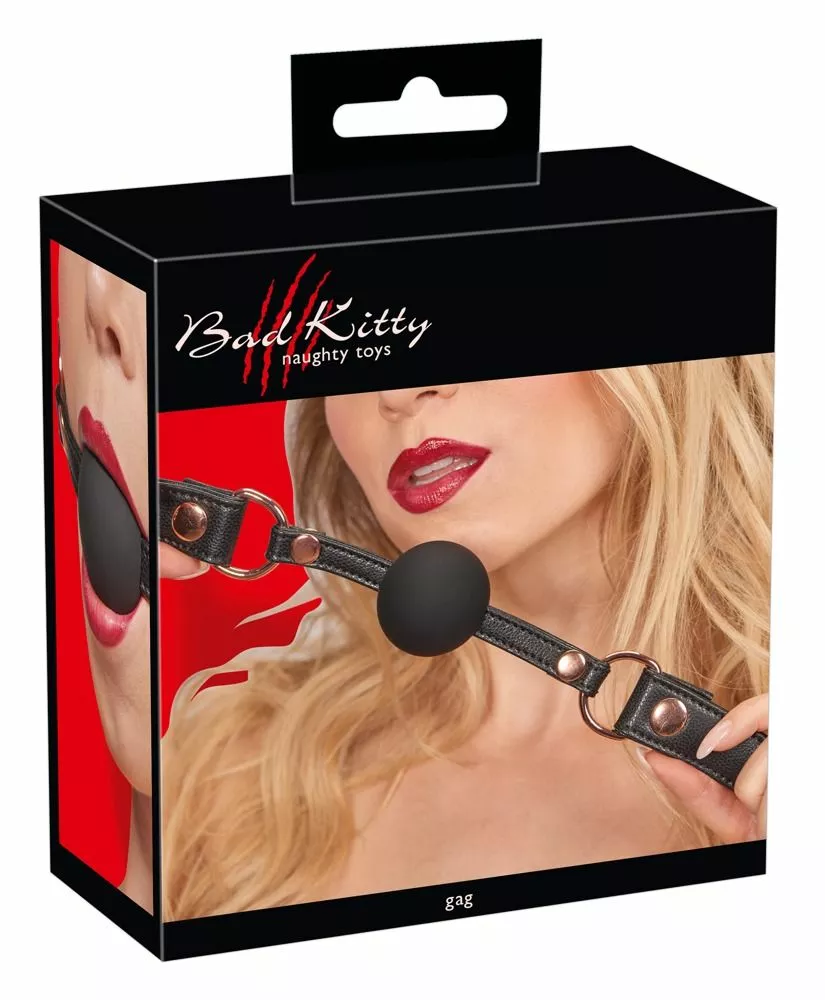 Ben jij een liefhebber van kinky spelletjes? Voor spelletjes van lust en onderwerping, is deze gag van Bad Kitty de perfecte accessoire. De ronde bijtvaste bal is gemaakt van siliconen en heeft een diameter 4 cm. De band is gemaakt van hoogwaardige lederlook met roségoudkleurige metalen elementen. Binnenkant met zachte pluche coating en verstelbaar met gespsluiting voor zijn/haar hoofdomvang.
