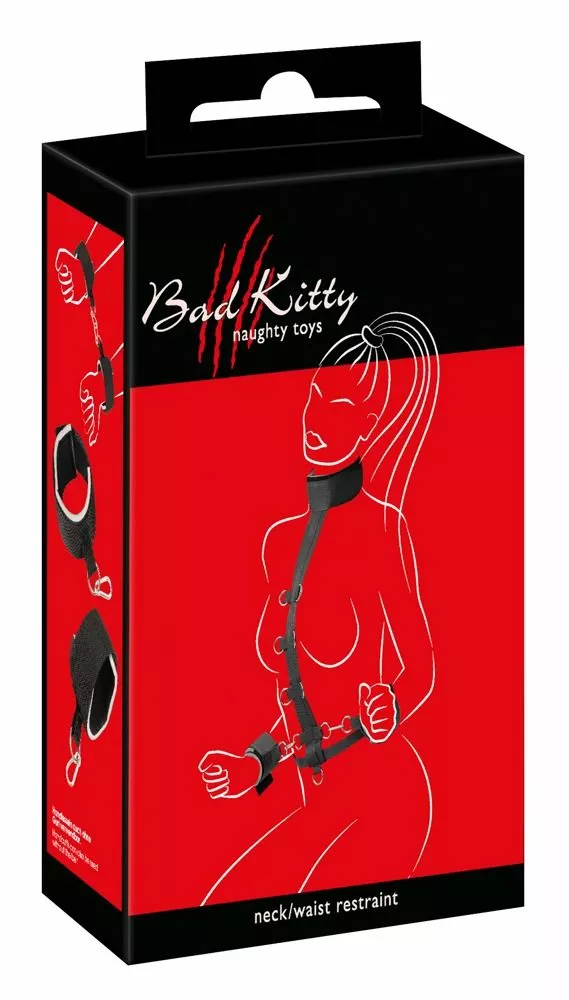 Deze Bondage Restraint Nek en Handboeien van Bad Kitty is geweldig voor BDSM liefhebbers. De halsband is doormiddel een stang verbonden met de handboeien. De hals- en handboeien zijn licht gewatteerd en de tailleband, handboeien en halsband zijn verstelbaar. Daarnaast is de stang voorzien van 9 D-ringen. Met de Bondage Restraint Nek en Handboeien ben jij zeker van een kinky avondje.