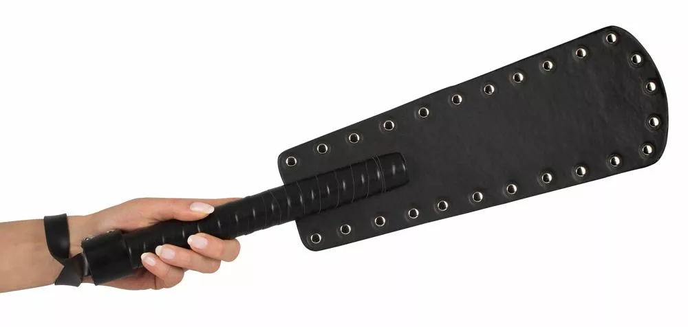 Laat deze Extra Grote Paddle – Zwart zeer hard aankomen. De paddle is gemaakt van kunstleer en is zeer solide zodat jij er flink tekeer mee kan gaan. Hij heeft een gevlochten handvat met een stevige polsband waardoor jij hem goed kan vasthouden. Met deze paddle heb jij gegarandeerd een kinky bdsm avondje samen met je lover.