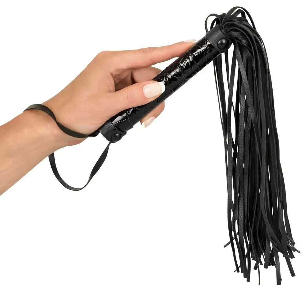 Voor een heerlijk bdsm avondje is dit de perfecte flogger om mee te beginnen. De flogger heeft een stevig handvat en heeft een polsbandje die jij om de pols heen kan hangen zodat jij ook ruig tekeer kan gaan. Het materiaal van de strengen is zacht en van kunstleer maar komt wel hard neer wanneer je lover er een goeie swing aan geeft. Het handvat is gevlochten en heeft hierdoor een stevige grip. Blinddoek je sub zodat hij of zij niet weet wat er gaat gebeuren.