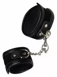 Deze handboeien van Bad Kitty staan garant voor een spannend bondage spel. De handboeien worden met elkaar verbonden door een korte ketting en een karabijnhaak om de bewegingsvrijheid zo klein mogelijk te houden. De boeien zijn gemaakt van zwart suède, ingevat met imitatieleer.
