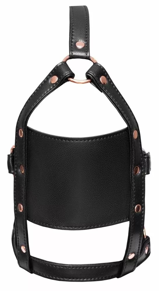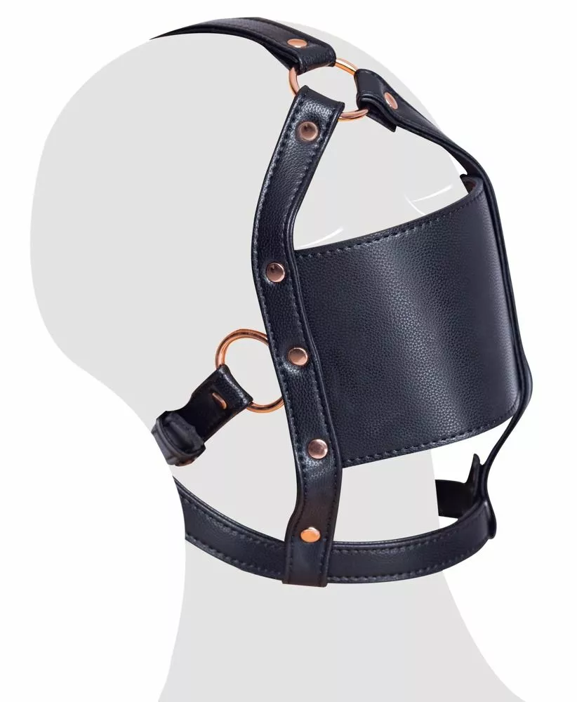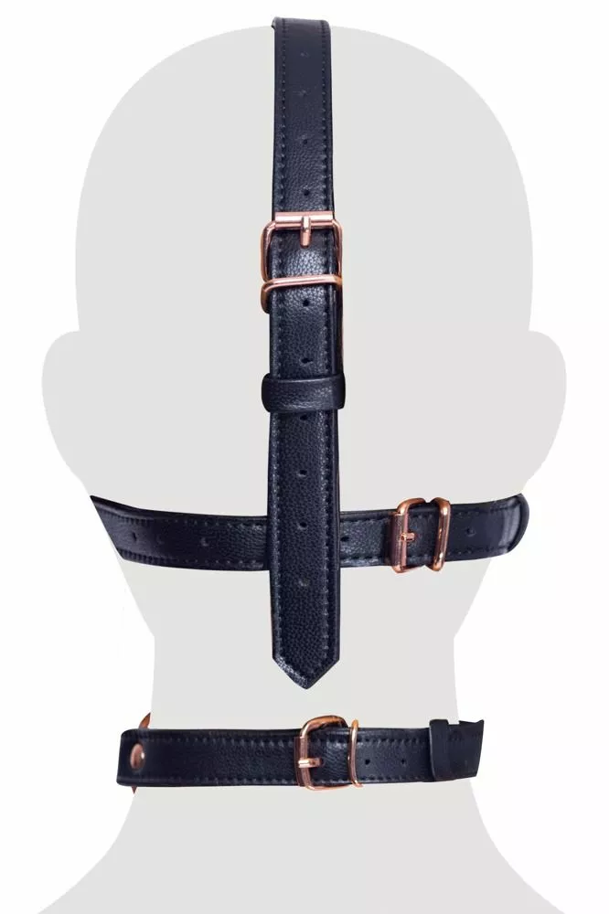De Hoofd Harnas met Gag van het merk Bad Kitty heeft een bijtvaste ronde knevel met een diameter van 4 cm. Het stijlvolle harnas is gemaakt van kunstleer met roségoudkleurige metalen details. De bandjes zijn verstelbaar met gespsluiting.