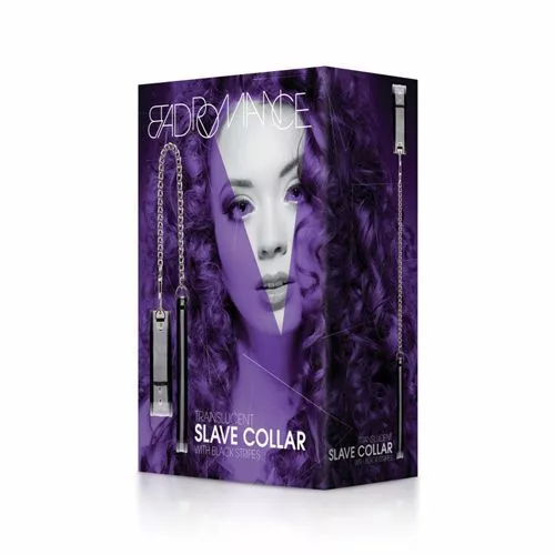 Zwarte transparante halsband met ketting. Wandel met je slaaf met deze zwarte slaven halsband inclusief riem. De halsband is doorzichtig en heeft zwarte strepen. Aan de halsband zit een ketting riem met een zwart handvat. Speel de baas en laat jouw slaaf jouw bevelen opvolgen!