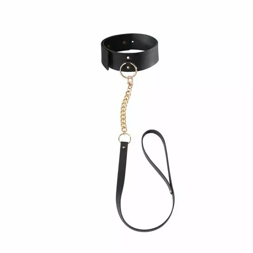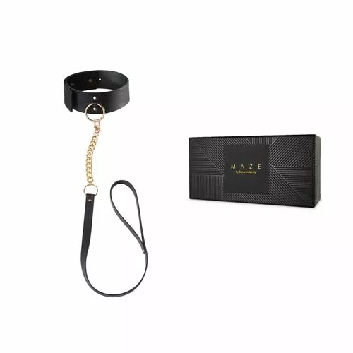 Maak jouw BDSM-look compleet met deze schitterende halsband met daaraan een goudkleurige riem. Het is een sexy en uitdagende choker die je leuk kunt combineren met de andere producten uit deze lijn van MAZE. Zoals met maskertjes, jarretels, collars, bodykettingen, boeien, etc. Het materiaal is gemaakt van topkwaliteit kunstleer, het zit super comfortabel en je kunt de halsband eenvoudig op maat brengen. Perfect geschikt voor spannende feestjes of voor in jullie slaapkamer dan wel speelkamer…