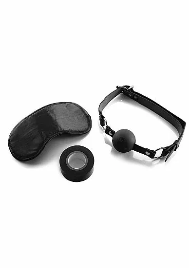 Ga een kinky spel tegemoet met de zwarte Bondage Set van het merk OUCH! De bondage set is voorzien van een blinddoek, ballgag en tape! Ideaal voor elk BDSM avontuur! De Set is volkomen bodysafe en perfect voor beginners. Geniet van het spannende gevoel van macht en onmacht dat BDSM geeft. De Ballgag riempjes zijn gemaakt van leer. Daardoor zit hij comfortabel en is makkelijk verstelbaar. En dankzij de elastische band is de blinddoek handig te verstellen. En de oersterke bondagetape is 17,5 meter lang en super zacht voor de huid. Ook raakt de tape niet in de knoop! Kortom deze bondage set is ook super leuk om weg te geven als cadeau!