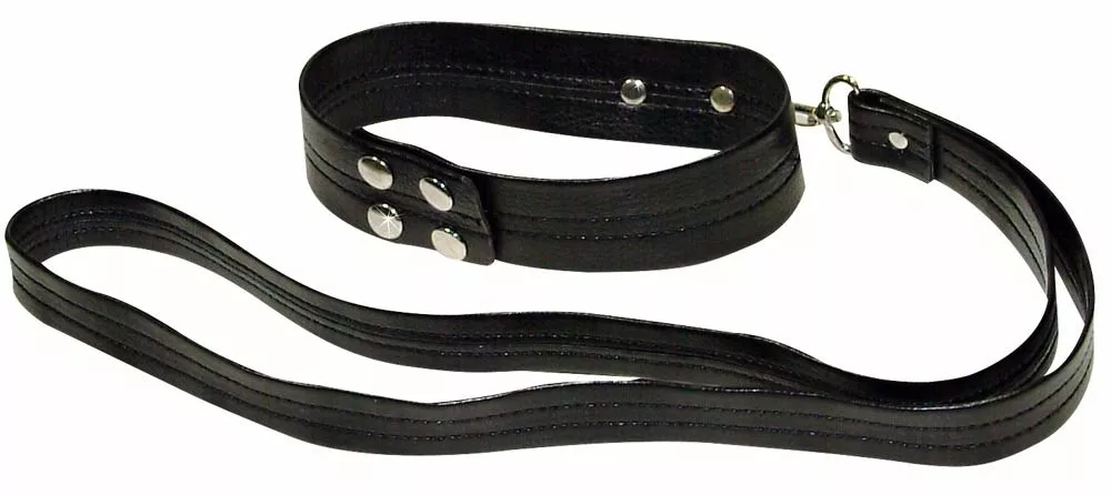 - Halsband ( 3,8 cm breed, met drukknoopsluiting, vooraan met ring) met riem ( 60 cm lang, aan karabijnhaak)