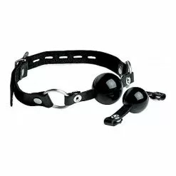 XR Brands Siliconen Bit Gag Met Tepelklemmen – Zwart