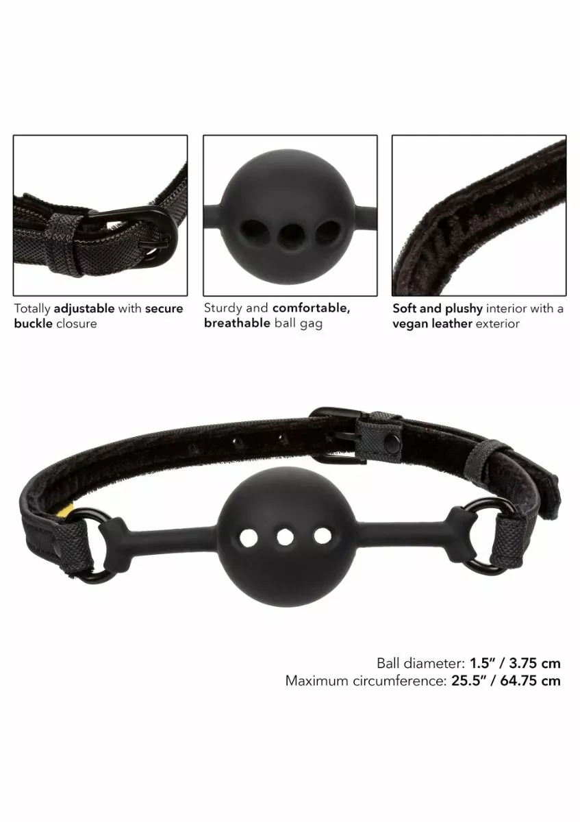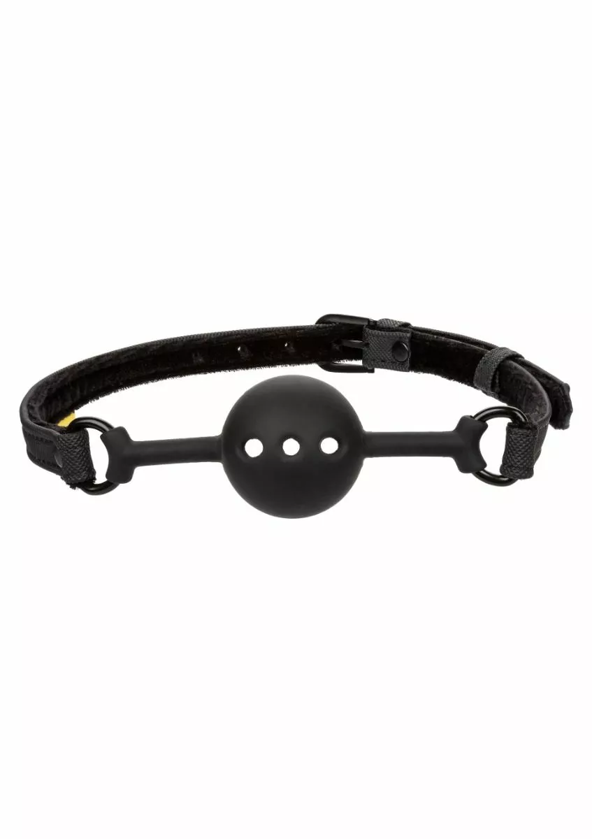 De Ball Gag Boundless Breathable van CalExotics is het perfecte erotische accessoire voor koppels die willen experimenteren. De gag is gemaakt van siliconen en veganistisch leer. Door de verstelbare gespsluiting is hij gemakkelijk aan te passen. Duik diep in avontuurlijk verlangen en geef je over aan je meest erotische fantasieën met deze sensationeel comfortabele ademende ball gag.
