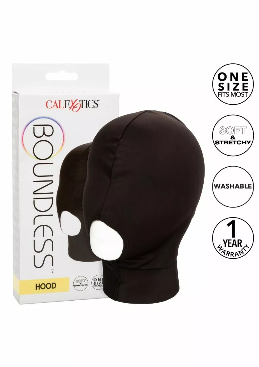 Dit BDSM Masker Boundless Hood van CalExotics is ideaal voor koppels die willen experimenteren met zintuiglijk plezier en spannende, erotische avonturen willen beleven. Het masker is gemaakt van ademende stof, een rekbare pasvorm en een ontwerp dat het zicht beperkt. Het luxueus zachte masker creëert een gezichtsbeperkend gevoel dat de gevoeligheid verhoogt.