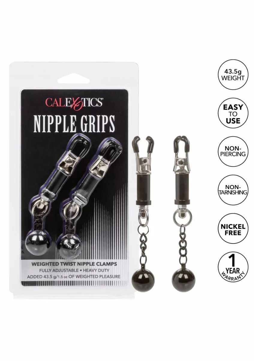 Zoek je grenzen op met de Tepelklemmen Twist met gewichten van CalExotics. Met deze twee Tepelklemmen ontdek je een verhoogd gevoel. Ze hebben een uniek gedraaid ontwerp en zwaaiend gewicht. Perfect voor een kinky avond!