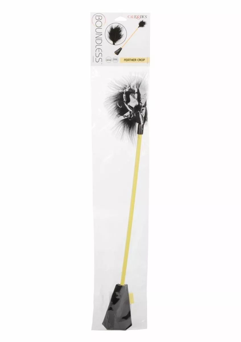 De Zweep Boundless Feather Crop van CalExotics is een dubbele BDSM-zweep gemaakt om te gebruiken als kunstleren zweep en kietelveer. Schakel moeiteloos tussen stout en aardig. Verhoog de zintuigen en vervaag de randen van plezier en pijn.