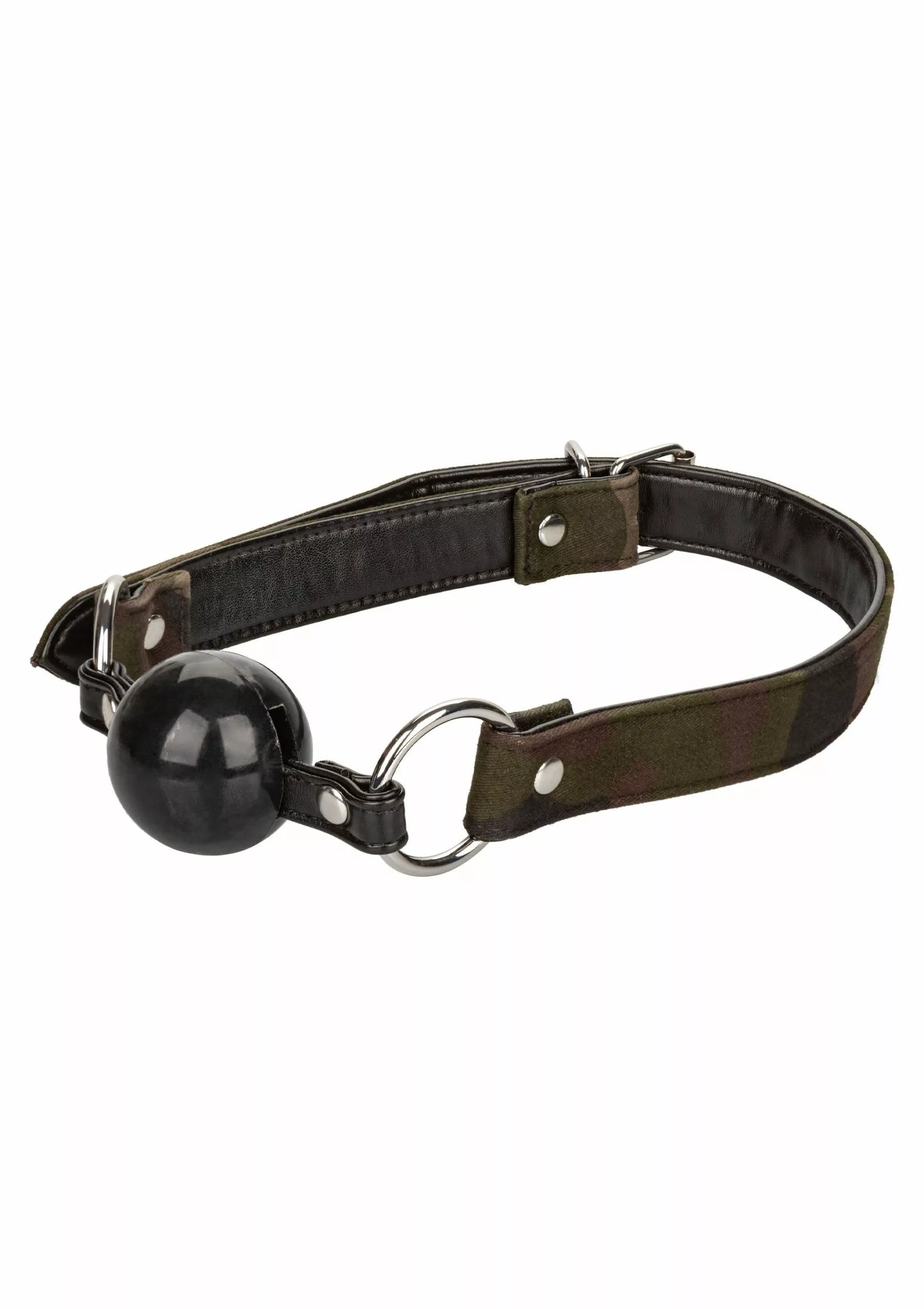 Deze ballgag met camouflage look kun je gebruiken tijdens een kinky BDSM rollenspel met je partner. De riem bevestig je om het hoofd van de ondergeschikte en vervolgens stop je de bal in zijn of haar mond. Hierna kan de sub uiteraard niet meer praten. Als de sub ook met handen en voeten geboeid is betekent dit volledige overgave. Het is daarom belangrijk om bij het gebruiken van een ballgag een duidelijk ‘stopteken’ af te spreken zodat de sub altijd kan aangeven dat de meester(es) direct moet stoppen. Een ballgag is bedoeld voor ervaren BDSM liefhebbers.