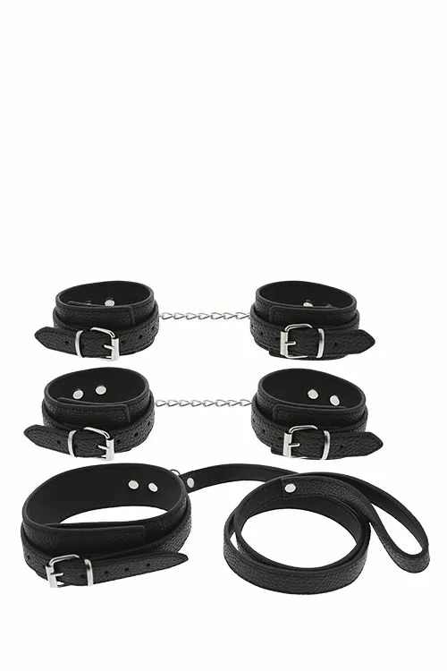 Zijn jullie beginnend in bdsm en willen jullie het bondage spel graag eens uitproberen? Dan is de Blaze Boeien Set Zwart een geweldig beginners product. De set bestaat uit handboeien en enkelboeien die verstelbaar zijn en een verstelbare halsband met lijn en polsband zodat je partner jou goed in bedwang kan houden. Het soepele materiaal van de Blaze Boeien Set Zwart is gemaakt van kunstleer en zit lekker zacht om de huid heen.