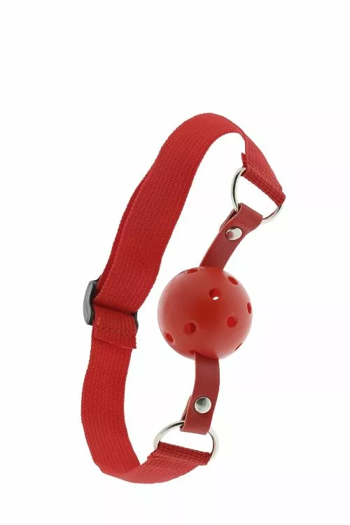 Deze geweldige ballgag is perfect voor de beginners die het graag eens een keer op de bdsm manier willen proberen. De gag heeft een kleine ronde bal die voorzien is van gaten zodat je gewoon nog kan ademen. De gag heeft een elastieken band die tevens verstelbaar is zodat hij een fijne pasvorm heeft. Geniet van een aangename eerste keer met de Rode Ball Gag met Gaten.