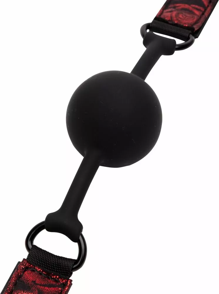 Een absolute must-have voor in je spannende BDSM collectie, namelijk de Fifty Shades Of Grey Sweet Anticipation Ball Gag! Deze gag is reversible en kun je dus aan beide kanten dragen. De ene zijde is in zwart lederlook en de andere zijde met satijn in zwart/rood rozendessin. Daarnaast is de gag gewatteerd voor extra comfort en is de gag verstelbaar met klittenband.