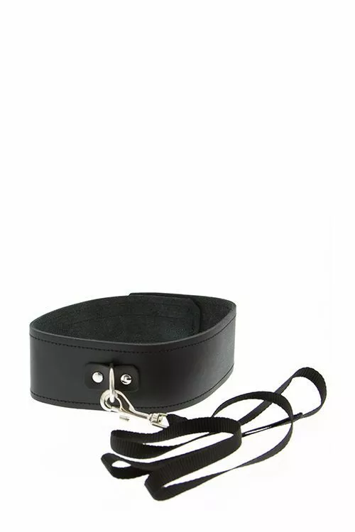 Verstelbare halsband met riempje speciaal voor de bdsmer’s onder ons. De halsband is gemaakt van kunstleer en heeft een mooie afwerking. Het riempje zit bevestigd aan een snap clip en is afneembaar, zo kan jij de halsband ook als stoer sieraad dragen. De halsband is ook zeer geschikt voor de beginners van bdsm, hij is namelijk niet meteen zo robuust en dat de halsband met klittenband is te sluiten maakt het minder heftig.