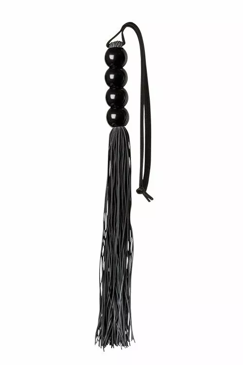 Deze schitterende zwarte silicone flogger is perfect voor in je collectie bdsm toys tevens is hij geweldig om mee te nemen wanneer je een weekendje weg gaat of wanneer je met vakantie gaat. Hij is namelijk heel compact en dus is er vast wel een plekje in je koffer of weekendtas over om dit heerlijke bdsm speeltje in te verstoppen. De flogger heeft silicone strengen die naar wens hard, zacht of speels aan kunnen komen. De strengen voelen zijdezacht aan en zijn heel duurzaam. Het handvat heeft 5 beads waardoor hij perfect in de hand ligt en voor het hardere werk hebben ze er een polsbandje aan toegevoegd zodat jij hem niet kwijt zal raken terwijl je hard bezig bent.