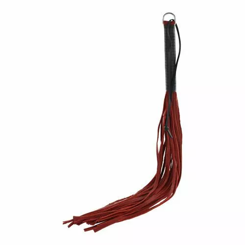 Rode zweep met zwart handvat gemaakt van leer. Met meerdere leren strengen. Deze zweep geeft jou de macht in handen! Laat al jouw fantasieën uitkomen en laat je partner alles doen wat jij maar wilt… Aan het handvat van deze zweep zit een koord bevestigd die je om je pols kunt wikkelen. Op deze manier kun je de zweep nog beter vasthouden.