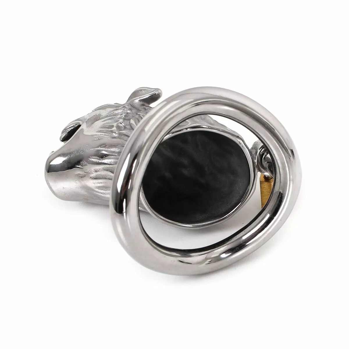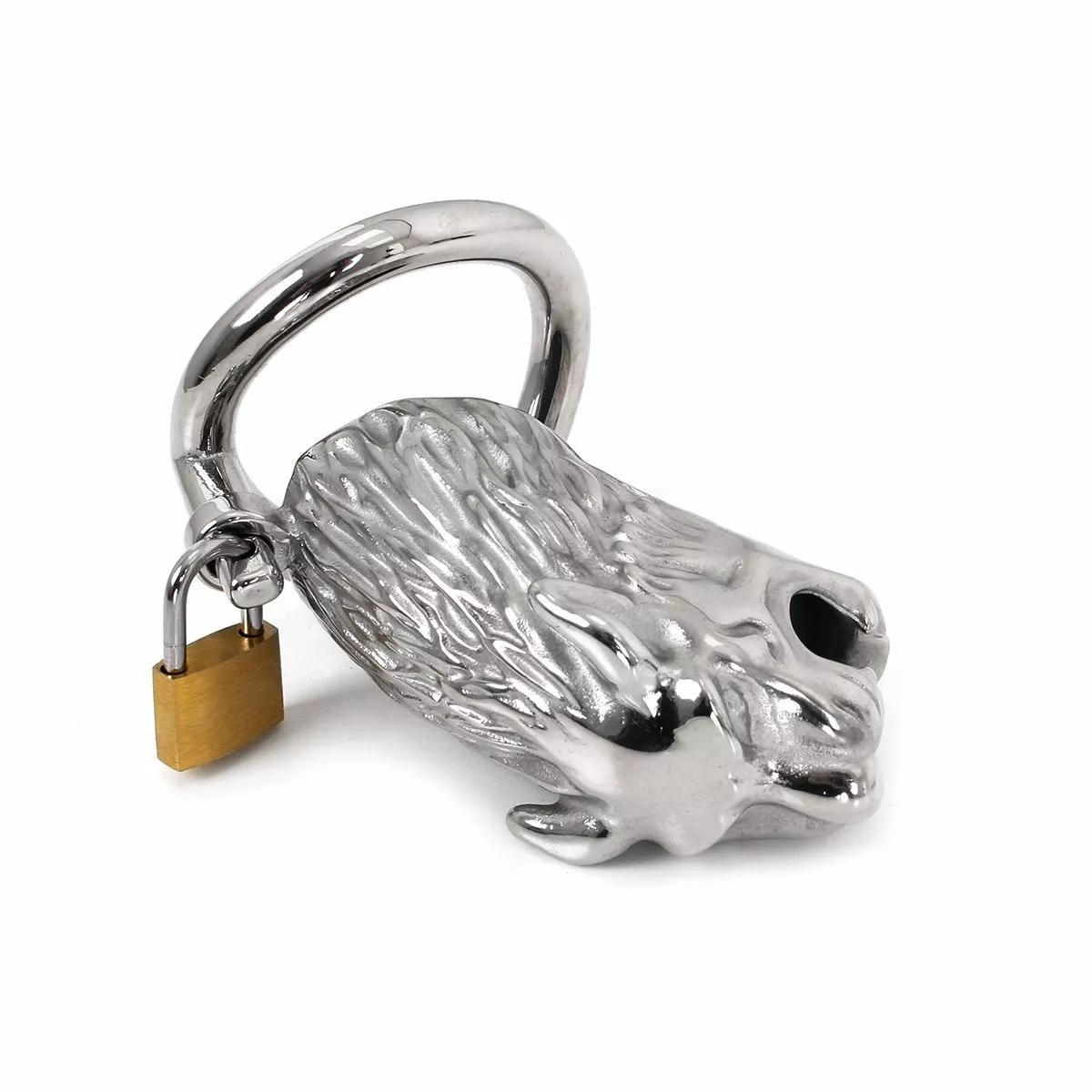 Heeft jouw partner of sub iets te veel vrijheid? Beperk deze dan met de Kiotos Cock Cage Lion. Deze peniskooi in leeuwenvorm heeft een super stoere en kinky uitstraling en is geschikt voor liefhebbers van BDSM. De Cock Cage Lion is gemaakt van hoogwaardig RVS en wordt afgesloten met een slotje. Dit maakt het onmogelijk om er nog uit te komen, tenzij de master hem zijn vrijheid biedt. Deze leeuwenvorm peniskooi is zeer gemakkelijk in gebruik; plaat de kooi en de ring over zijn schacht en sluit af met het slotje. De ring heeft een diameter van 45 mm. Het is nu voor hem onmogelijk om een erectie te krijgen. Wil je hem nog verder kwellen? Dan begint het spel der verleiding en opwinding..