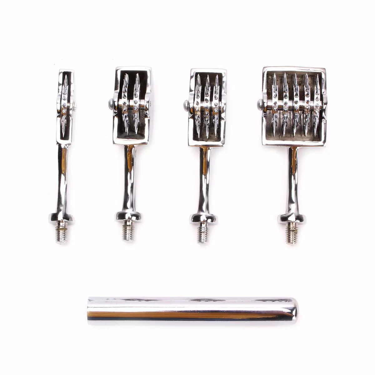 Voor de echte pinwheel lovers is de Pinwheel Set een echte aanrader. Deze zeer complete set bevat een handvat met 4 opzetstukken. Zo kan jij van 1 wieltje naar 5 wieltjes gaan in een handomdraai. De wieltjes zijn eenvoudig en snel te verwisselen.Wanneer je wordt geblinddoekt voelt het als een scalpel die door je huid gaat, zonder door de huid heen te dringen! De Pinwheel Set is gemaakt van roestvrij staal voor een duurzaam leven.