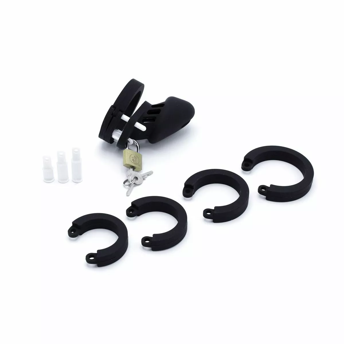 De Siliconen Cock Cage is voor vrijwel iedereen te dragen, Hij wordt namelijk geleverd met drie penisringen in diverse maten. Ook worden er twee bandjes om vast te binden, een slot met drie sleutels en vijf individueel genummerde plastic slotjes meegeleverd. Jij hebt met dit pakket een zeer volledig product zodat je geheel klaar bent om hem volledig te domineren.