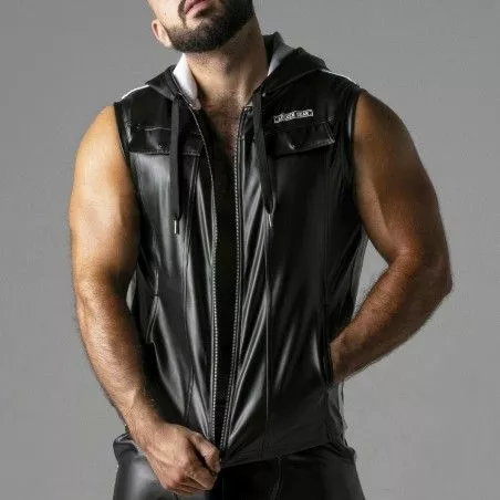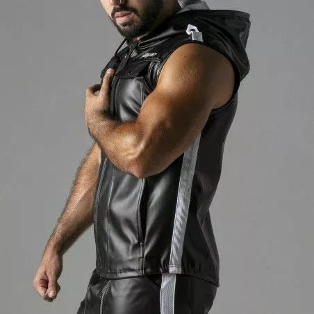 Ga voor dé perfecte sporty meets fetisj look in deze té gekke hoody in de kleur wit van het merk Locker Gear. De hoody is perfect om te dragen in de club of gewoon als streetwear. De hoody is gemaakt van soepel, glanzend, en glad kunstleder waardoor het een spicy uitstraling krijgt. Daarnaast beschikt de hoody over contrasterende strepen in de kleur wit voor een speels effect en is de hoody mouwloos. Combineer de hoody met andere bijpassende fetisj artikelen voor de gehele kinky look!