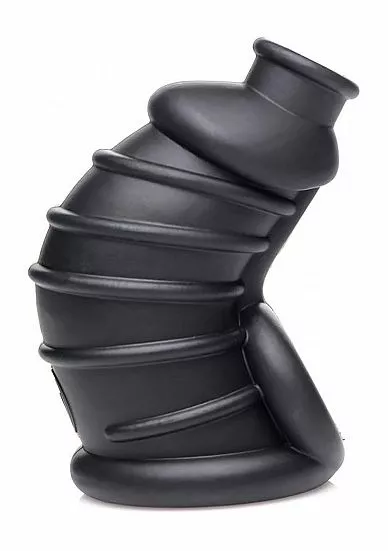 Sluit de pik van je sub op in deze donkere kamer. Deze siliconen kuisheidskooi is zacht, flexibel en voelt fluweelachtig aan. De Dark Chamber heeft een zacht skelet van iets steviger siliconen voor dat authentieke kooigevoel, maar vormt zich nog steeds met je lichaam voor extra comfort tijdens het dragen.