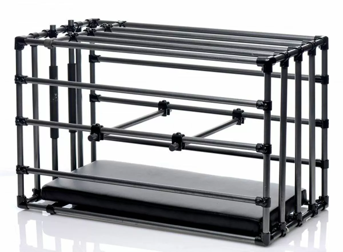Deze veelzijdige kooi vormt een uitstekende aanvulling op je speelkamer en zet direct een statement richting je partner neer. Montage-instructies zijn inbegrepen. Afmetingen: 112 cm lang, 57 cm breed en 72 cm hoog.