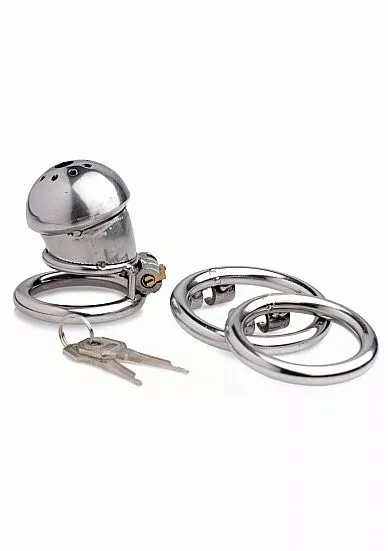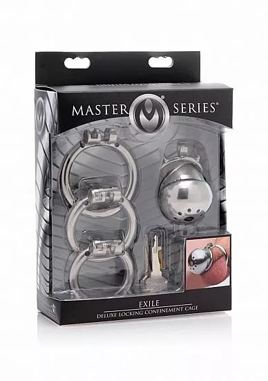 Is jouw partner of sub iets te losbandig geweest? Zet zijn penis dan op slot met deze luxe eikel kooi met cockring en slot van Master Series. De Exile peniskooi wordt geleverd met een slotje, zodat de penis van jouw partner achter slot en grendel zit totdat jij besluit hem hier weer uit te bevrijden. Schuif de eikel kooi om de eikel en sluit het slot met het sleuteltje. De opening bij de eikel zorgt ervoor dat je zonder problemen kunt plassen. Het sterke metaal voelt koud en robuust aan voor de ultieme sensatie. De 3 meegeleverde verschillende cockringen geven de kooi de perfecte maat voor elke gebruiker. Binnendiameter van de ringen zijn: 3,8 4,3 cm en 4,7 cm.