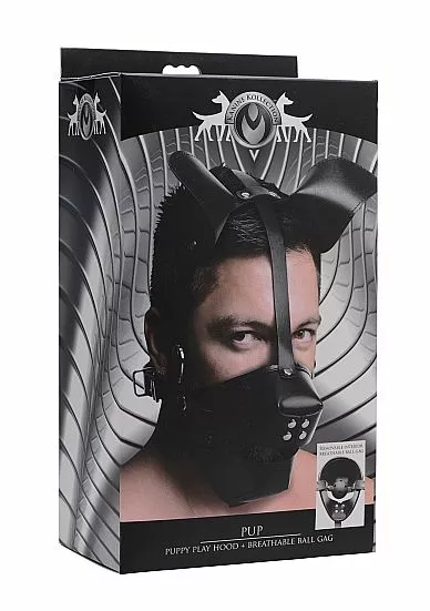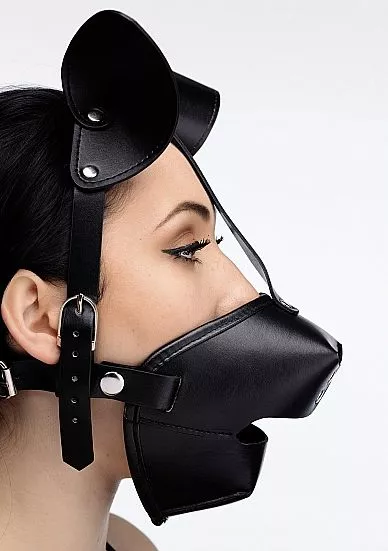 Met dit kunstleren masker kan jij je slaaf omtoveren in een onderdanige pup. Het masker heeft gedetailleerde oren en een snuit met open bek en een open ballgag met gaten erin. Het masker is geheel verstelbaar met riempjes zodat hij voor zowel de man als de vrouw gebruikt kan worden. Het masker is verstelbaar achter in de nek en om het hoofd. Met 3 metalen D-ringen kan jij alle kanten op met jouw pup. Leg de pup aan de riem en neem hem mee uit wandelen, of neem hem mee naar puppy training. Door de ballgag heeft je pup niet de kans om alles bij elkaar te blaffen, hij zal netjes zijn puppy cursus doorstaan met de ballgag in.