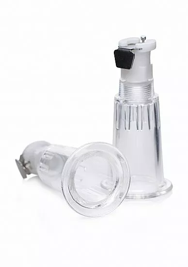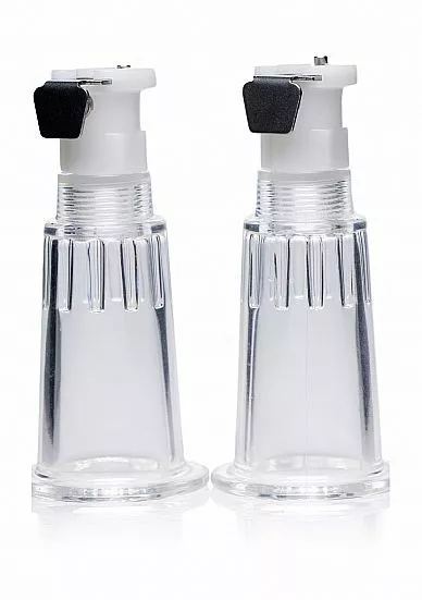 Voor professionele zuigkracht ga jij voor deze geweldige Tepel Zuigers met Pomp – Rood van Master Series. Deze pomp heeft een luchtdrukmeter om de drukopbouw te zien terwijl je tepels tegelijkertijd vacuüm worden gezogen! De zuigkracht van de tepel verhoogt de gevoeligheid en stuwt tijdelijk doordat de bloedsomloop naar het tepel gebied trekt. Deze heerlijke sensatie is samen maar ook solo te gebruiken. Plaats de transparante cilinders gewoon over jouw stijve tepels en gebruik indien nodig glijmiddel om ze luchtdicht te maken. Knijp in de ergonomisch gevormde hendel van de trekker om de afzuiging te starten en bekijk de voortgang op de luchtdrukmeter. De slang bevat 2 individueel geregelde luchtstroomkleppen om de ervaring voor elke tepel aan te passen. Ben jij tevreden met de luchtdruk dan is er niks aan de hand maar om de luchtdruk te verlagen gebruik jij snel en makkelijk het ontluchtingsventiel. Je kunt de cilinders zelfs na het pompen losmaken en ze op je tepels laten zodat je de handen vrij hebt om je dagelijkse dingen te doen. Beleef tepelplezier op een geheel nieuwe manier met de Tepel Zuigers met Pomp – Rood van Master Series.