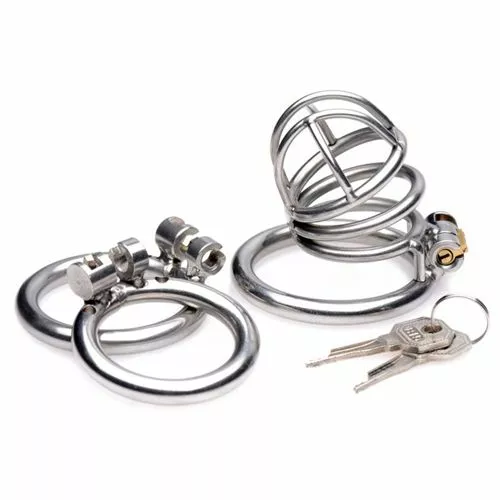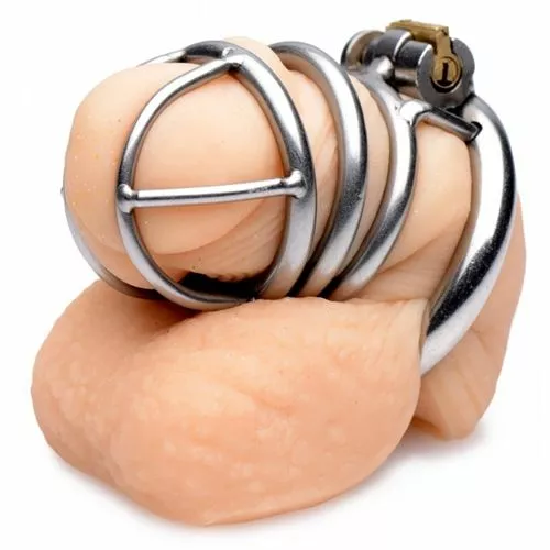 Of je zijn penis nou slechts een time-out geeft of een leven lang in de gevangenis stop, The Pen RVS kuisheidskooi van het merk Master Series geeft je volledige controle over je sub’s penis. Deze RVS peniskooi zal het mannelijk geslachtsdeel als geen ander bewaken en kan zelfs de meest ruige avonturen doorstaan. Een kuisheidskooi wordt vooral gebruikt door BDSM liefhebbers. Deze kooi voorkomt dat je een erectie kan krijgen en de dominant bepaalt wanneer je penis weer de vrijheid krijgt om te groeien.. The Pen kuisheidskooi is gemaakt van zeer sterk materiaal en heeft een uniek slotensysteem zodat de sub de kooi zelf niet af kan doen. Je moet namelijk eerst de sleutel in het slot steken en draaien om het slot in het scharnier te kunnen steken. Draai het slot vervolgens nog een keer zodat je slaaf volledig machteloos wordt.