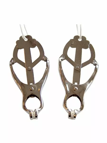 Geniet van kinky seks met deze Japanese Clover Clamps van het merk Mister B. Deze tepelklemmen in Japanse stijl hebben een uniek design en zorgen ervoor dat je tepels, of die van je partner, binnen no time lekker hard worden. De klemmen zijn gemaakt van sterk en stoer RVS en hebben een lengte van 9 cm. Het gedeelte waar de tepel klemt, is voorzien van zachte pads zodat de klemmen comfortabel rond je tepels aanvoelen. Naast het prachtige Japanse design, vallen deze tepelklemmen meteen op door de touwtjes aan de onderkant. Dankzij deze touwtjes kun je trekken aan de tepelklemmen voor de ultieme kinky bdsm spelletjes. De Japanese Clover Clamps zijn volledig bodysafe en waterproof. Geniet van een beetje pijn voor nog intensere seks!