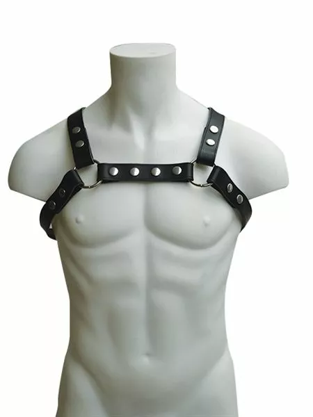 Dit schitterende harnas is het perfecte item voor elke party. Maar ook in de slaapkamer is dit harnas perfect te dragen. Combineer het met een leren broek of een geile gescheurde jeans. Het leer is heerlijk soepel en zal met het dragen steeds fijner gaan zitten omdat hij helemaal naar het lichaam zal vormen. De voorkant is voorzien van 2 d-ringen waar het harnas met elkaar verbonden wordt en het leer is voorzien van studs voor een stoere uitstraling. Op de rug heeft het harnas een kruislings model waar je rug mooi in uit zal komen.