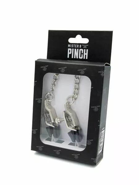 De Tepelklemmen Pinch Alligator Clamps van Mister B zijn vernoemd naar de alligator, als ze op je tiet kauwen, laten ze niet meer los! Deze knijpers zijn met schroeven verstelbaar, zo kun je zelf bepalen hoeveel druk je uitoefent. De klemmen hebben zachte plastic doppen die verzachten de impact van de klemmen. Verder worden de klemmen aan elkaar verbonden door een ketting.