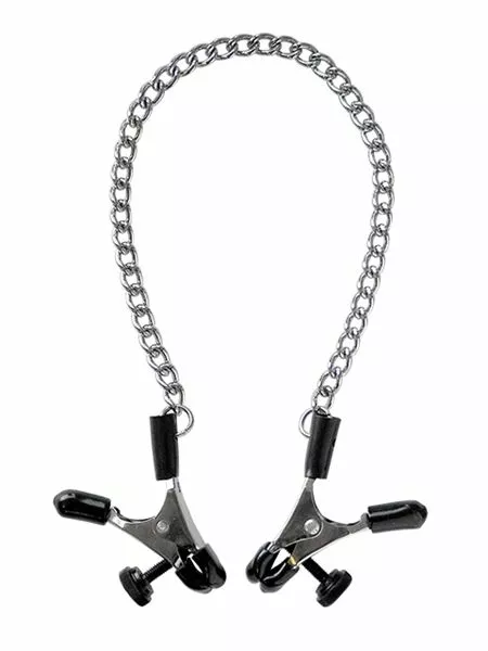Aan de onderkant van de Tepelklemmen hangt een ketting die de klemmen met elkaar verbindt, deze kun je er ook tussenuit halen zodat je er bijvoorbeeld gewichtjes aan kan hangen.