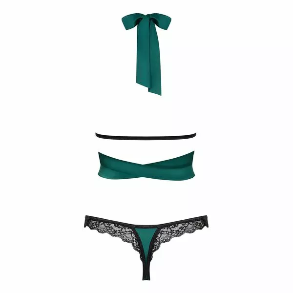 Obsessive heeft zichzelf overtroffen met de prachtige Sensuelia Set – Groen! Deze tweedelige lingerie set is heerlijk sensueel en heeft een uniek design met speelse details. De set is gemaakt van Silky Touch stof in een geweldige groene kleur en romantisch zwart kant.