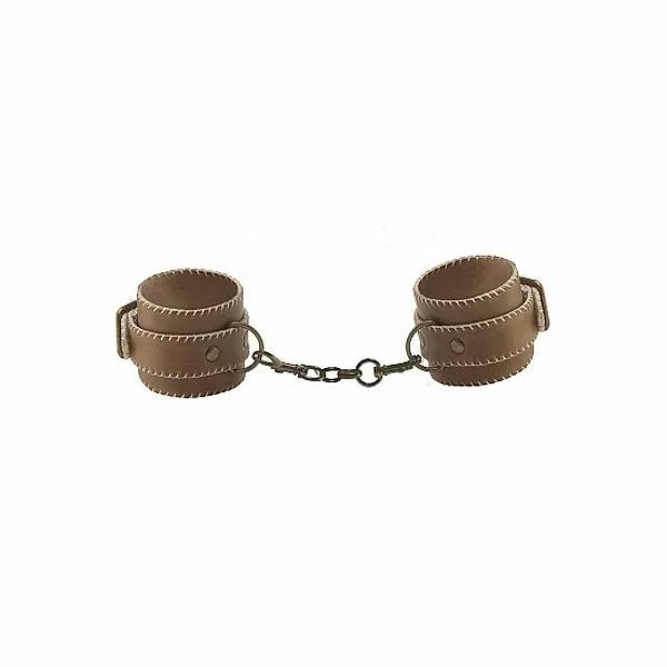 Lekker stevige handboeien van Ouch! Brown. Ze zitten lekker en zien er mooi uit; bruin met mooi afgewerkte witte stiksels.