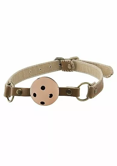 Bent jij een liefhebber van ondeugende spelletjes. Dan kun je jouw Sub rustig houden met deze opvallende Ballgag. De bruine, kunstleren bandjes zijn van hoogwaardige kwaliteit en zijn voorzien van elegante stiksels over de gehele lengte en van 13 gaatjes om de lengte af te stellen. Verder heeft de Ballgag heeft 4 ademhalingsgaten. Dit maakt deze Ballgag erg geschikt voor beginners. Experimenteer er maar lekker op los met deze Ballgag en verbreed samen met jouw liefje jullie seksuele horizon.