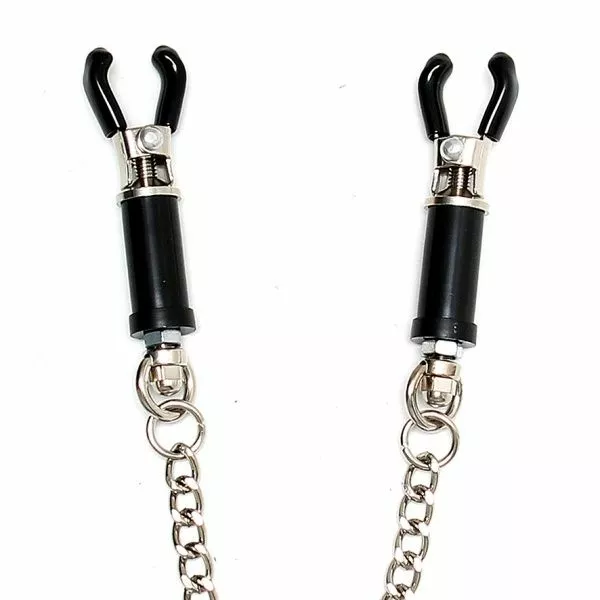 Deze professionele tepelklemmen zijn perfect voor de ervaren liefhebbers van bdsm. De klemmen zijn naar wens aan te draaien zodat jij zelf de hoeveelheid pijn kan bepalen. De siliconen covers zullen er voor zorgen dat ze niet van de tepel af glijden en het spaart de huid. De mooie zware ketting valt nonchalant over de borsten heen.