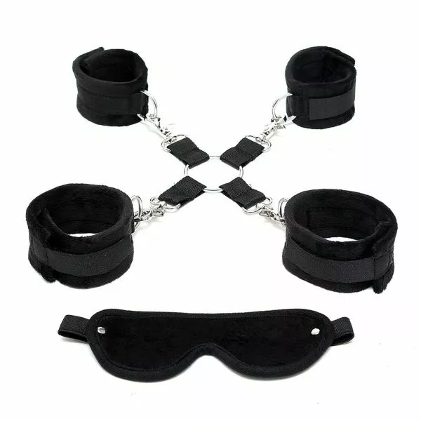 - Set bestaat: Handboeien, enkelboeien, blinddoek