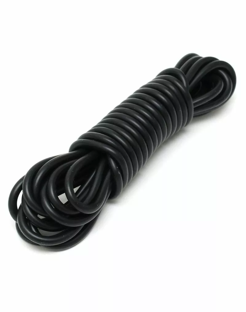 Het zwarte siliconen bondage touw van rimba is perfect voor beginnende bdsm stelletjes die elkaar eens op een zachte manier willen vastbinden. Het touw is gemaakt van zacht siliconen en is lichtelijk rekbaar. Met een lengte van maar liefst 6 meter kan jij heel wat lichaamsdelen met elkaar verbinden. Doordat het touw gemaakt is van siliconen zal het niet in de huid snijden en daarnaast is het mogelijk om je liefje ook eens kinky vast te binden in de douche. Ga voor heel wat beginners plezier voor dit siliconen bondage touw van rimba.
