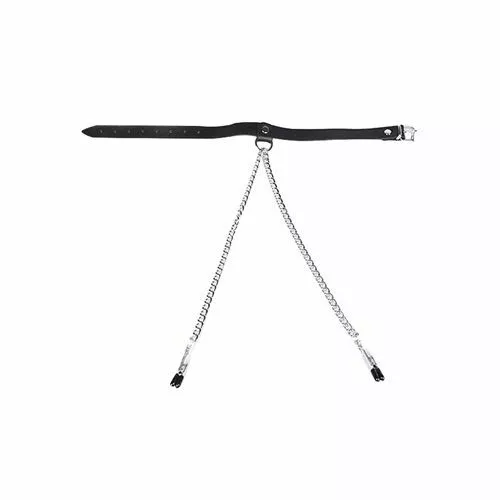 Met deze halsband met tepelklemmen aan een ketting komen al je stoutste dromen uit. De halsband die extra kettingen met klemmen heeft die op de tepels kunnen worden geklemd zorgen voor een extra spannende beleving in de slaapkamer. Doordat er ook een een halsband aan zit kunt je je ook volledig laten domineren door je partner door hier nog een riem aan te bevestigen. De klemmen zijn verstelbaar in sterkte waardoor je precies de goede grens van pijn op kunt zoeken.