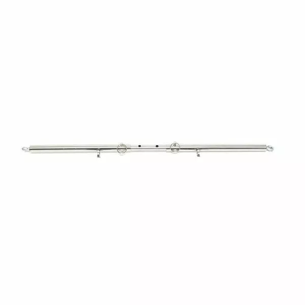Breng jullie bondage spel naar een hoger level met deze geweldige spreidstang van het geweldige merk rimba. Met deze spreidstang met 4 ringen kan jij met je favoriete hand en enkel boeien je sub vastbinden in het standje zoals jij hem of haar graag hebt. De stang is verstelbaar in verschillende lengtes van 55 tot 85 centimeter. Bepaal helemaal zelf hoe wijd jij je sub wil hebben staan. Meegeleverd zijn 4 karabijnhaken om je sub snel en eenvoudig vast en los te klikken.