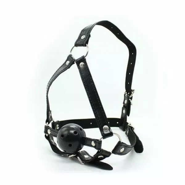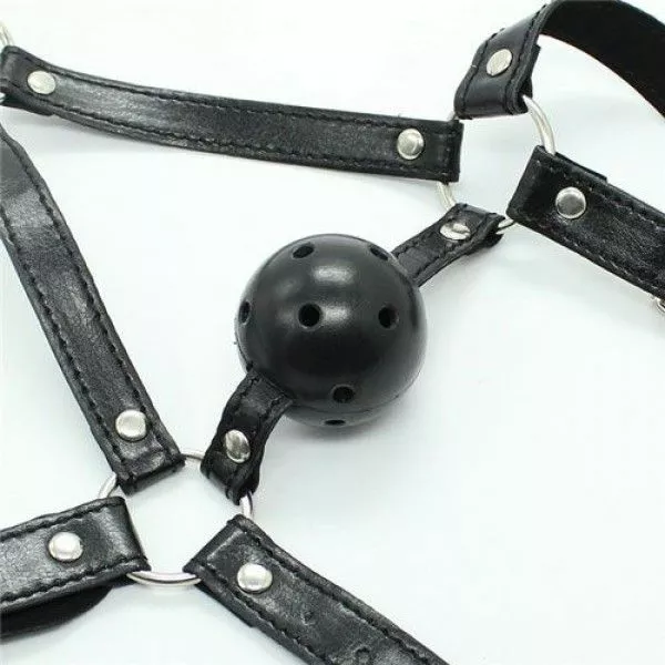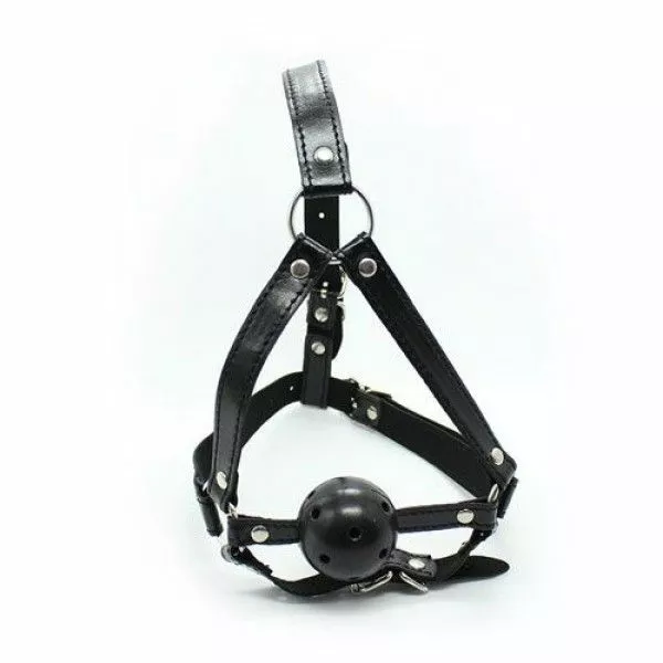 Bn jij een fetish liefhebber die er wel van houdt om aangepakt te worden? Laat je dan meeslepen door dit geweldige compleet hoofd harnas met ballgag. Het harnas is volledig aan te passen met riempjes voor een juiste pasvorm. De bal heeft gaten zodat jij nog kan ademen. Geef de volledige controle geheel aan je meester terwijl jij dit hoofd harnas draagt.