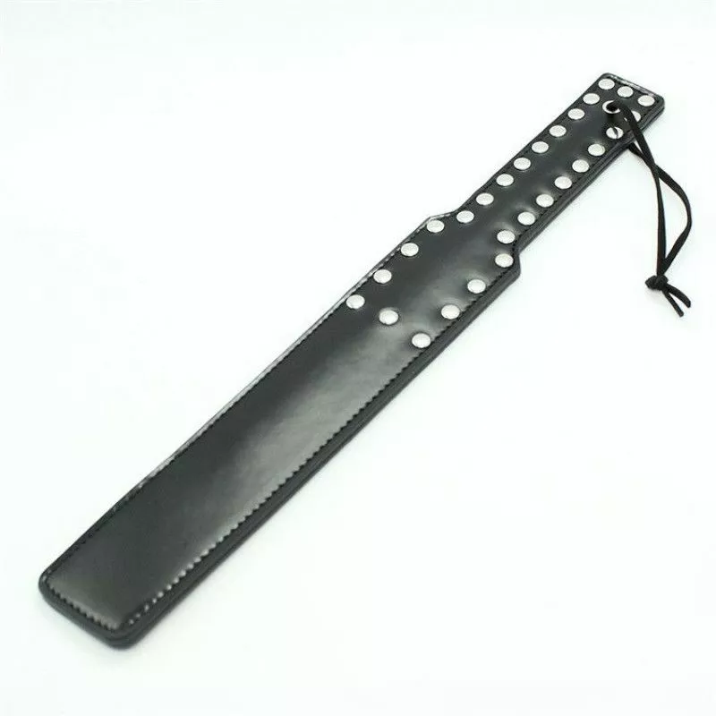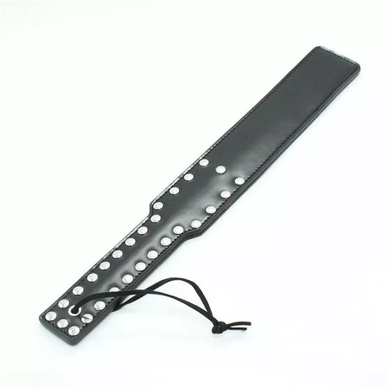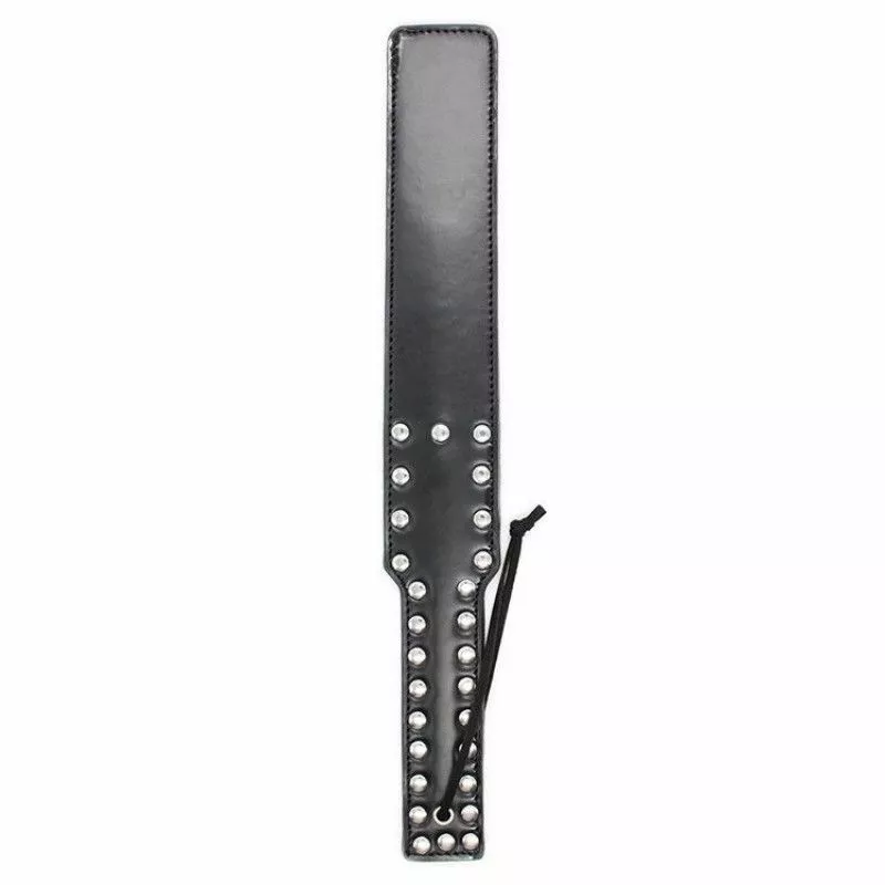 Deze spank paddle met studs is ideaal voor beginners die SM aan het ontdekken zijn. Met deze paddle kun je je partner tergen met rake klappen. De paddle is gemaakt van stevig materiaal en dankzij het handige polsbandje kun je deze sextoy gemakkelijk gebruiken zonder dat hij uit je handen schiet. Je kunt er natuurlijk niet alleen mee slaan, je kunt je partner er ook mee kwellen door tintelende strelingen. Zo kun je deze sextoy altijd perfect inpassen in jullie BDSM rollenspel. De paddle is gemaakt van kunstleer. Gebruik BDSM en SM sextoys altijd met het juiste voorbehoud en zorg ervoor dat je iemand niet meer pijn doet dan diegene bereid is te verdragen.