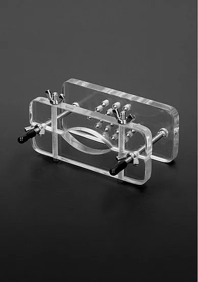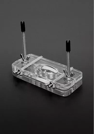 Hoe ver durf jij te gaan met deze ballen crusher met spikes van het merk Triune? Deze transparante ballen crusher van acryl is gemaakt voor mannen die houden van pijnlijk genot en liefhebbers van ball torture. Dit seksspeeltje zorgt voor intense druk op je ballen wanneer je de twee transparante plaatjes naar elkaar toe schuift. De spikes op het achterste plaatje maken het natuurlijk extra kinky! Je kunt helemaal zelf bepalen hoe strak je de bdsm ball crusher aandraait met de schroeven aan de zijkant. Geef een extra twist aan dit bdsm spelletje door de controle uit handen te geven en je te laten overmeesteren door je meester of meesteres. De Triune ball crusher is waterproof en na gebruik gemakkelijk schoon te maken.