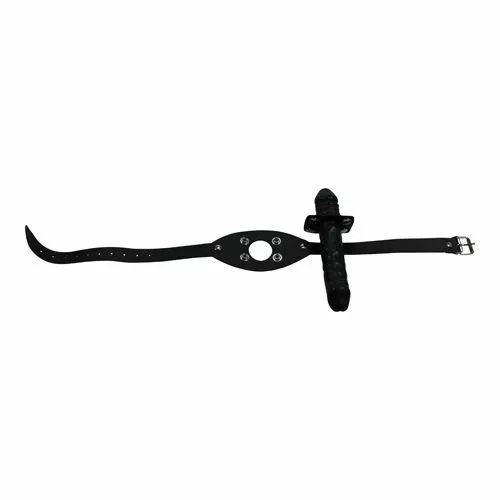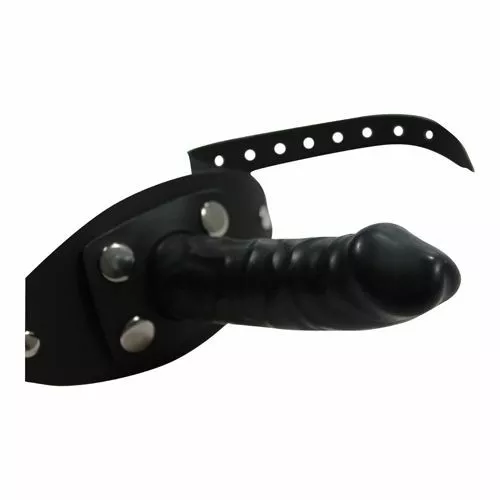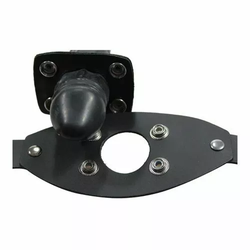 Verstelbare zwarte mondgordel, met aan de binnenkant een mondknevel(6 cm lang, Ø 3,5 cm).
