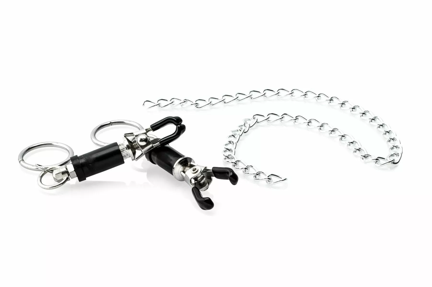 De Tepelklemmen met ketting Black Nipple van Zenn zijn met rubber beklede metalen klemmen. De klemmen zijn individueel verstelbaar in stappen van een tiende millimeter. Draai eenvoudig de cilinder om deze tepelklemmen te sluiten en te openen.